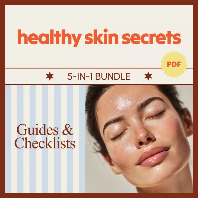 Healthy, glowing skin doesn’t have to feel complicated or overwhelming. The Healthy Skin Secrets Pack is a carefully designed 5-in-1 digital bundle that gives you clear guidance, practical steps, and easy-to-follow resources to support a balanced, sustainable approach to skin wellness. Instead of guessing what works, you’ll learn how hydration, supplements, daily habits, and consistency all come together to create a healthy skin routine that fits real life.