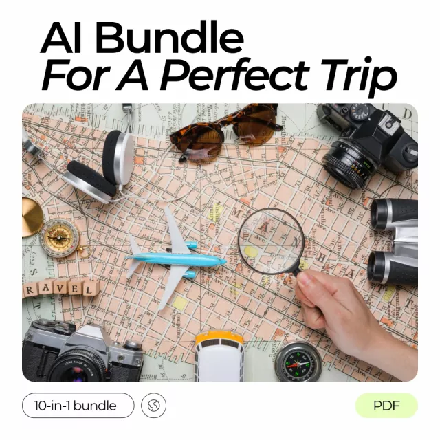 Unlike other travel guides, Your Ultimate AI Bundle for a Perfect Trip is designed to integrate seamlessly with AI tools. You get not just advice but actionable prompts for AI to plan a vacation, helping you create personalized, efficient, and unforgettable journeys without the usual hassle.
